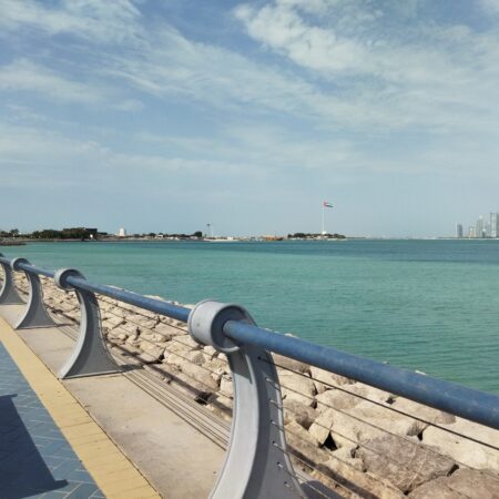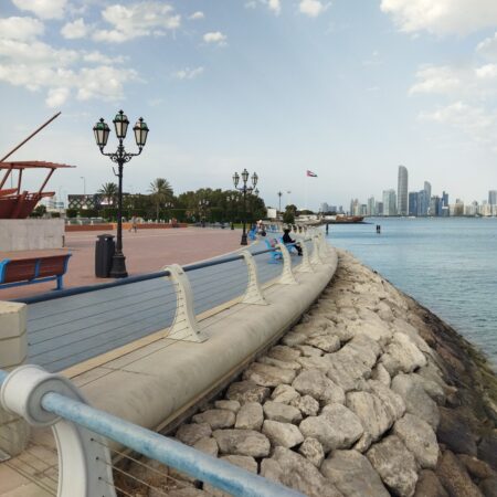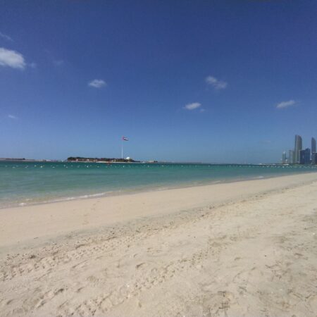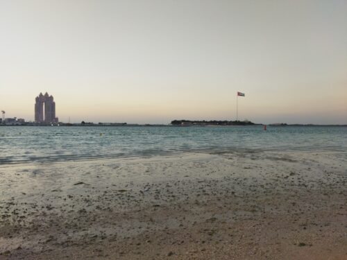 I wanted to visit the Louvre today (yes, the Emirates have their own Louvre), but of course it’s closed on Mondays. So I went to the beach. The Corniche was completely empty again, and once more I was the only one swimming. The wind was strong, but that didn’t stop me. At least it was sunny!
