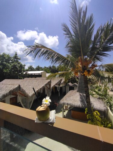 I stayed at Relax Residence — a cozy, welcoming guesthouse, just as good as a hotel. Upon arrival they handed me a welcome coconut with a flower. I was sort of expecting that — I’d seen it in