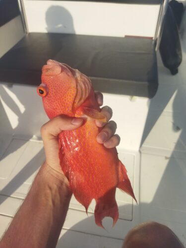 After lunch I went out on a motorboat for some fishing! Jigging with a “cheaty” lure, together with Artyom (the guy who runs the Relax Trip tours). We sailed far from the island, into deep water — we were letting the line down almost a hundred meters. And I didn’t come back empty-handed! Right before heading back, I caught a beautiful Red Snapper! (Family Lutjanidae.) Pulled him up from the depths. And Fidar, our boat captain — the same one who picked me up from Rasdhoo at the start — caught plenty of fish himself, all different kinds, including one really large one.)