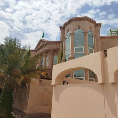 International Abu Dhabi Hostel is a 10-minute walk from the Central Bus Station (where I should have arrived). Nearby is the Belarusian Embassy — practically the same type of building, made of yellowish-pink stone. Funny.