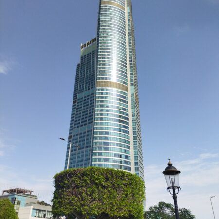 I wanted to visit the Heritage Village on the peninsula opposite the Corniche, but didn’t make it — it was closed as well because of Ramadan. And the flagpole next to it is enormous (123 meters); when you stand under it, it feels like it’s leaning right over you. The 40-meter flag can be seen from 60 km away.