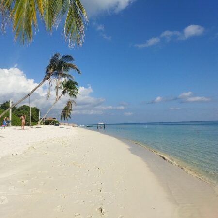 The Arabian palms look kind of sun-baked and dry, faded. And the water is brisk — 24°C — compared to the Maldives’ +30°C. And very bitter and salty. Corniche Beach is well-maintained, comfortable, and clean. On the wild Maldivian islands, beaches vary — some spots are perfect, others have bits of plant debris, stones, or almost no sandy strip at all.