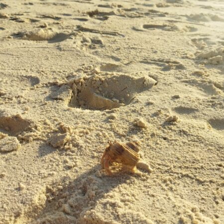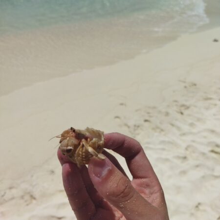 I saw a crab. We embarrassed him with filming — he tried to dig himself into a hole, hiding from the tourists.
