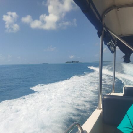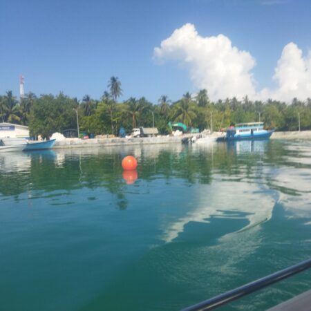 But I learned there was a speedboat to Rasdhoo leaving from the next jetty — and that’s close. Thoddoo is practically within sight from there. I arranged with the guesthouse owner via WhatsApp that someone would pick me up from Rasdhoo. The ride there cost 40$. And later they still charged me the 35$ for the missed Thoddoo boat. 🙁