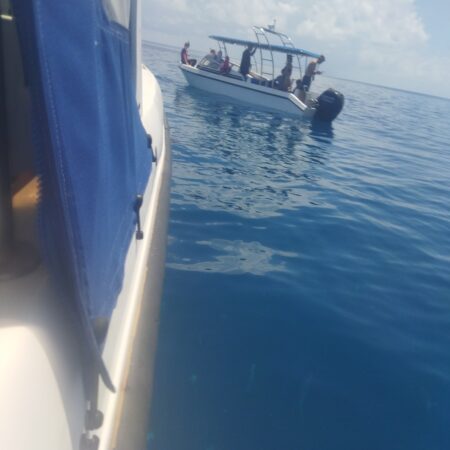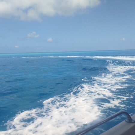 The “Atoll Cute” speedboat is big, holds 60 people — and every seat was taken. Not bad for them: four thousand dollars in one run!