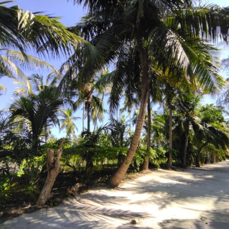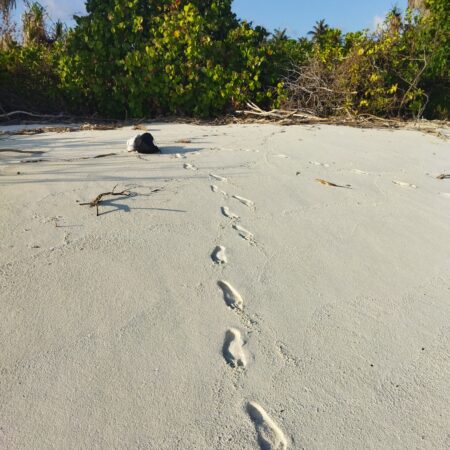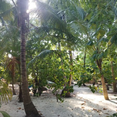 Real Maldivian backcountry. Wild jungle, wild beach. If on Thoddoo everything feels arranged for visitors and neatly placed where it should be, here it’s the opposite — nature rules. The jungle is dense, untamed. Trails are narrow, winding. On Thoddoo it feels like the jungle is “allowed” to be there; here the trails feel like intruders.)