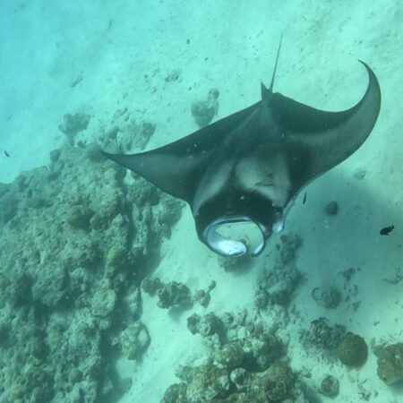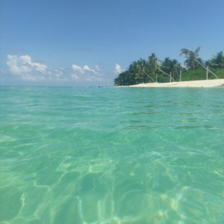 From Rasdhoo I continued on a motorboat. They took me personally!) The water was an incredible aquamarine, so crystal clear that you could see the whole bottom of the atoll. And the sea felt alive!… From the boat I saw turtles, flying fish skimming above the surface, and even a huge manta ray on the seabed! Pure delight — grinning ear to ear.