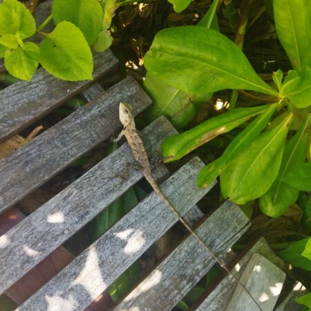 Near the guesthouse I saw little lizards and even green parrots about the size of cockatiels.)