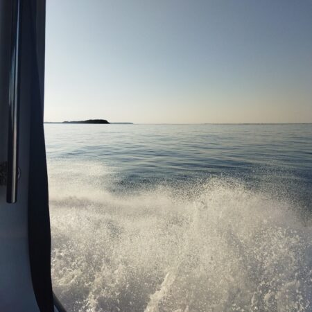 Finally, we set off. Fast! Spray everywhere, the boat racing forward. Remembering the story with my cap in Dubai, I hid mine just in case.