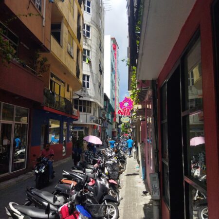 The capital of the Maldives is strikingly different from the other islands. Crowded, cramped — while the rest of the islands are freedom and open space. Here it’s a swarm of scooters shooting out from everywhere like jack-in-the-boxes. Narrow sidewalks, tight passages, even inside shops. Noisy, packed. No wonder — 200 thousand people squeezed into 7 km²! In some places it’s dirty, trash around, even in the sea, especially near the cargo harbor. Probably similar to India or Bangladesh. But this “other side” of the Maldives exists only in the backstreets of Malé.