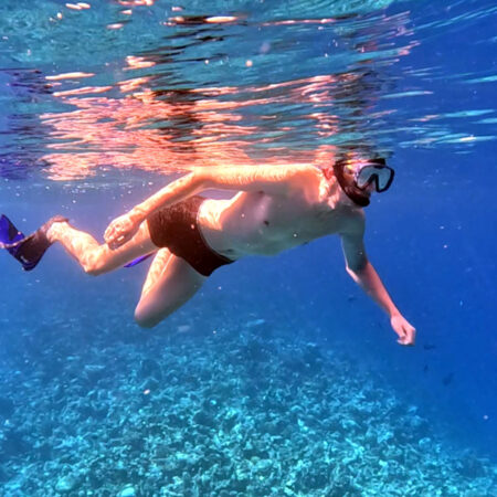 We snorkeled above a reef near a resort island. Indescribably beautiful! So many colorful fish — hundreds and hundreds. The current was strong enough to carry you forward; you hardly needed to move. And below us — a magical, living underwater world. An astonishing sight!
